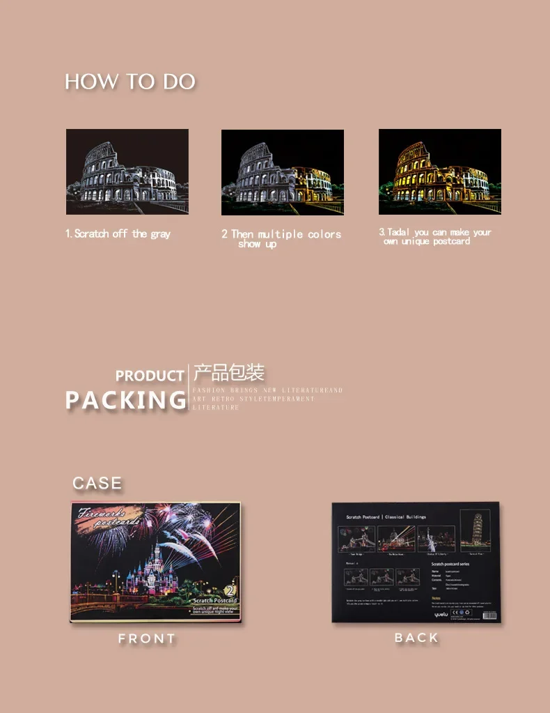 - Ampliamente aplicable: este arte de arañazos arcoíris para niños no solo se puede utilizar para cultivar el interés de los niños en la pintura y desarrollar sus habilidades creativas y prácticas, también es una muy buena decoración, ayudando a aliviar el estrés y relajarse