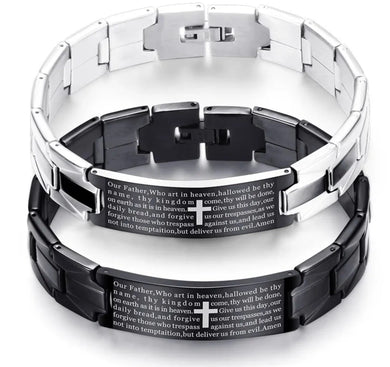 BRAZALETE CON PADRE NUESTRO DE ACERO INOXIDABLE