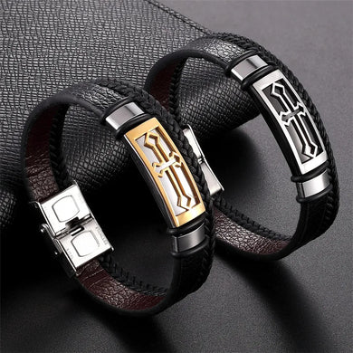 BRAZALETE DE CUERO Y ACERO INOXIDABLE,VARIOS.