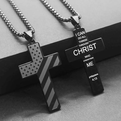 COLLAR CON DIJE BANDERA AMERICANA Y CRUZ