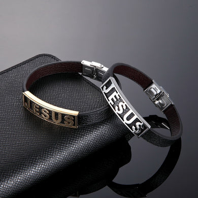 PULSERA DE CUERO Y ACERO DE JESÚS