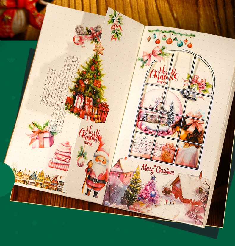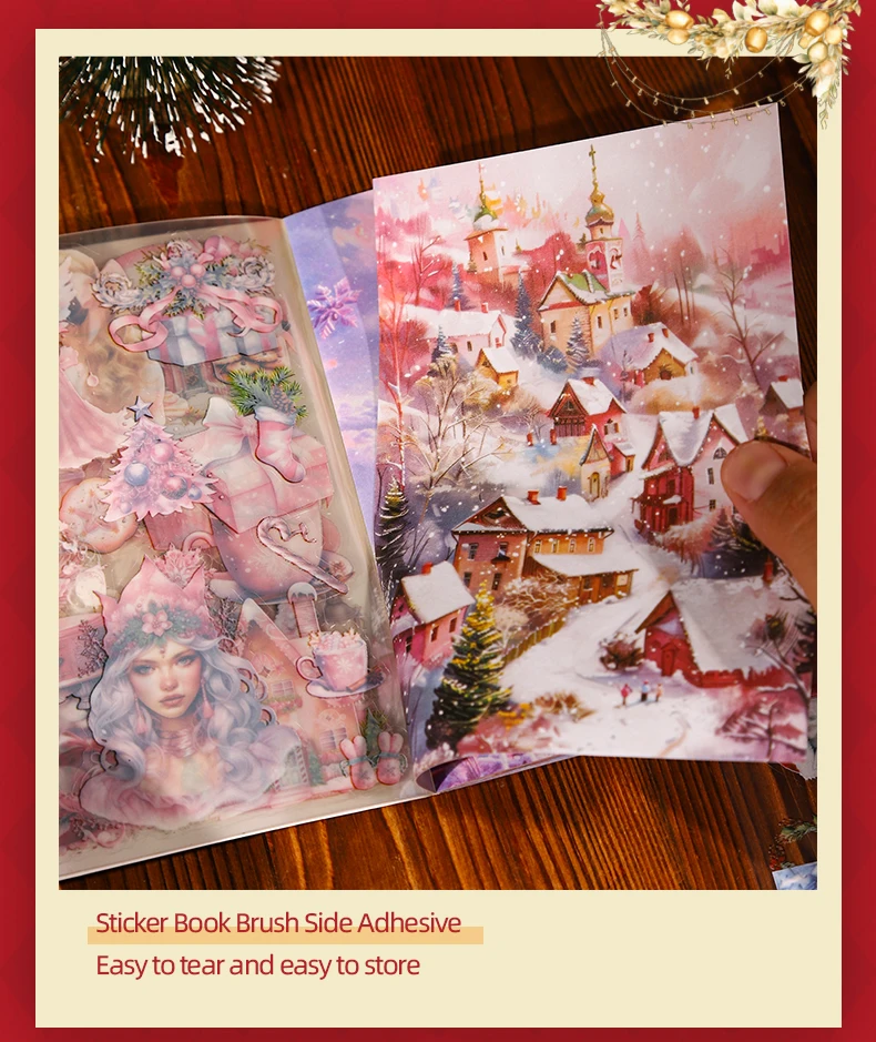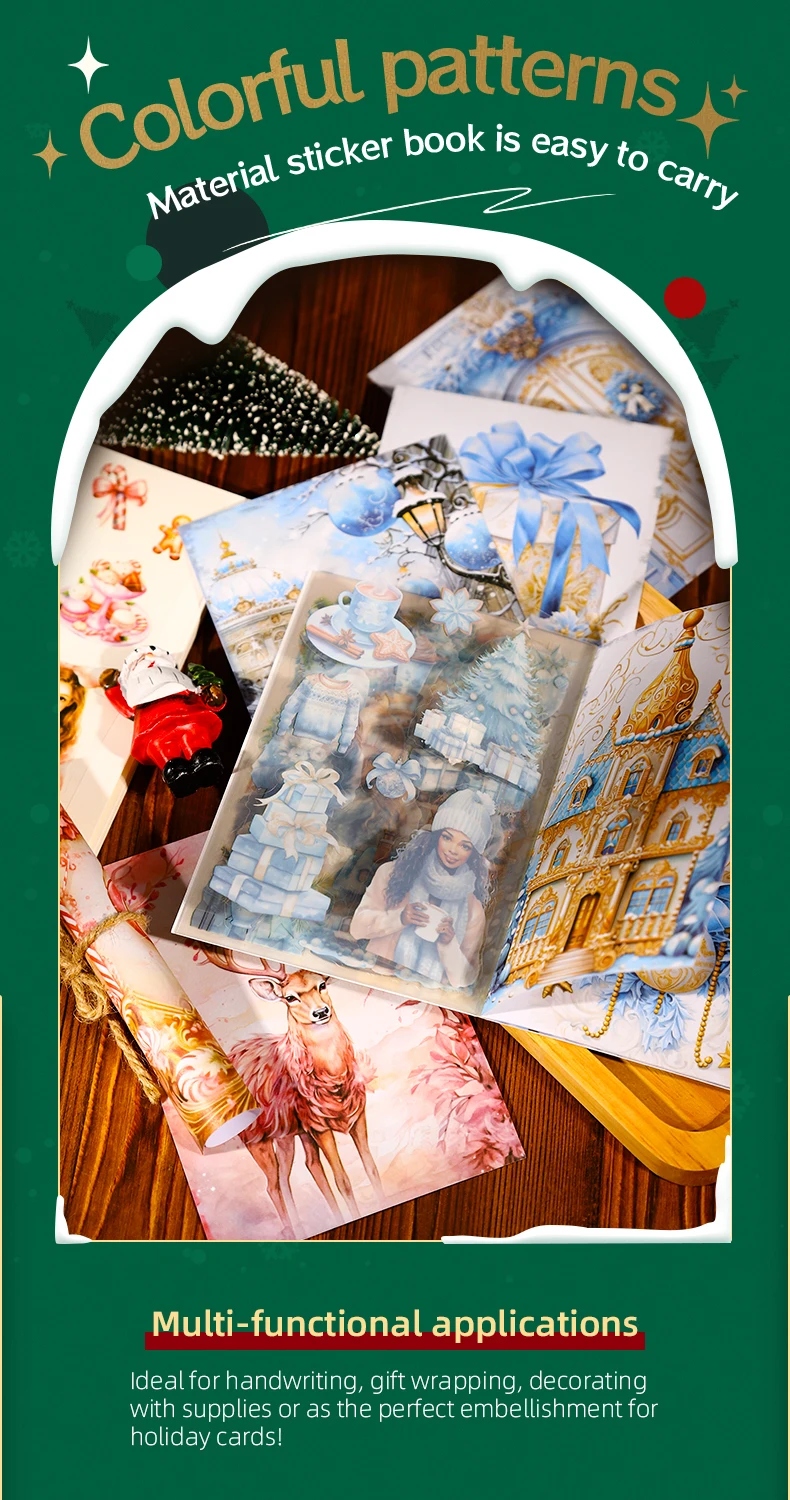 - El libro de pegatinas de lujo contiene 20 páginas de diseños navideños con 70 stickers pequeños.