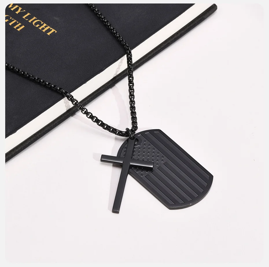 - Significados especiales: el collar con placa de identificación con la bandera estadounidense simboliza una combinación de patriotismo y fe. La bandera representa lealtad, orgullo y amor por el país, mientras que la cruz significa creencias religiosas y devoción a la propia fe.